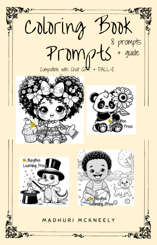 Discover the joy of creativity. I've created this eBook to specifically help you create kid friendly coloring pages. The prompts are compatible with both ChatGPT & DALL-E.